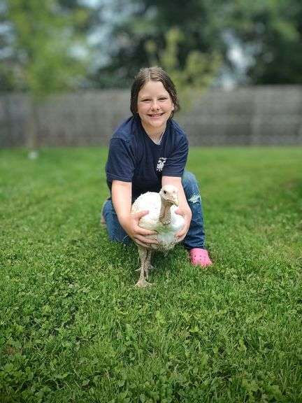 Allie Johnson, age 11, is in her second year of raising turkeys. She is part of the Geauga Prime Time 4-H club. In her free time she enjoys singing and cooking. She even had the honor of singing the national anthem at Thompson's 4th of July celebration.